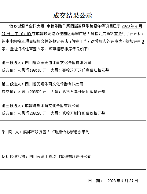 怡心街道“全民大运 幸福乐跑”第四届国风乐跑嘉年华项目结果公示