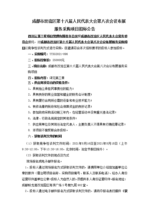 成都市双流区第十八届人民代表大会第八次会议布展服务采购项目招标公告