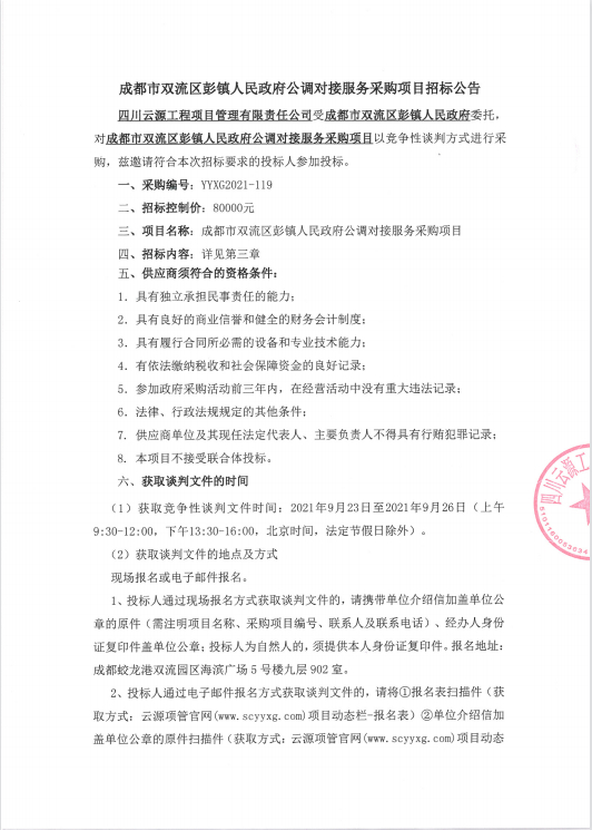 成都市双流区彭镇人民政府公调对接服务采购项目招标公告