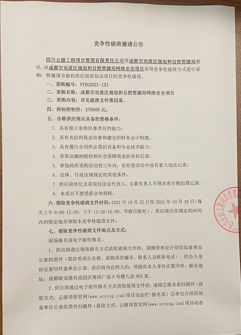 成都市双流区规划和自然资源局网络安全项目竞争性磋商公告
