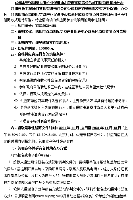 成都市双流国际空港产业促进中心营商环境宣传节点打造项目招标公告