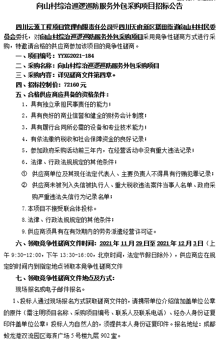向山村综治巡逻巡防服务外包采购项目招标公告