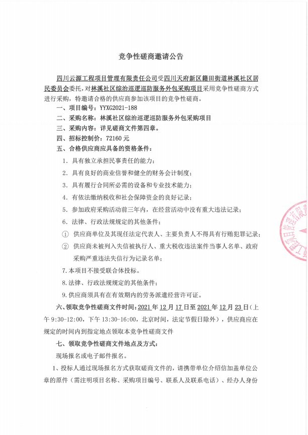 林溪社区综治巡逻巡防服务外包采购项目招标公告