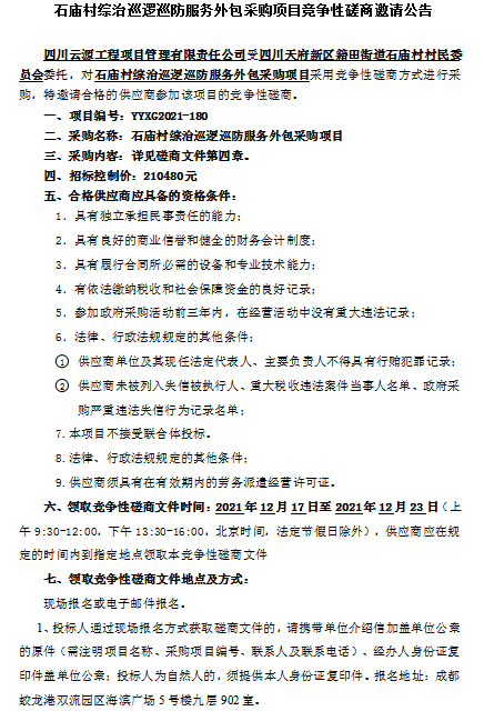 石庙村综治巡逻巡防服务外包采购项目招标公告