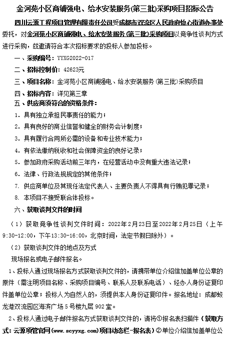 金河苑小区商铺强电、给水安装服务(第三批)采购项目招标公告