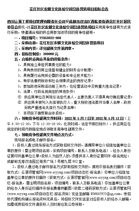 花红社区农耕文化体验空间总体营造项目招标公告