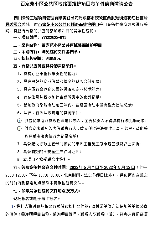 百家苑小区公共区域路面维护项目招标公告