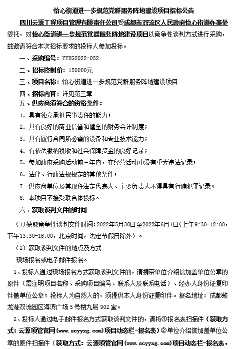 怡心街道进一步规范党群服务阵地建设项目招标公告