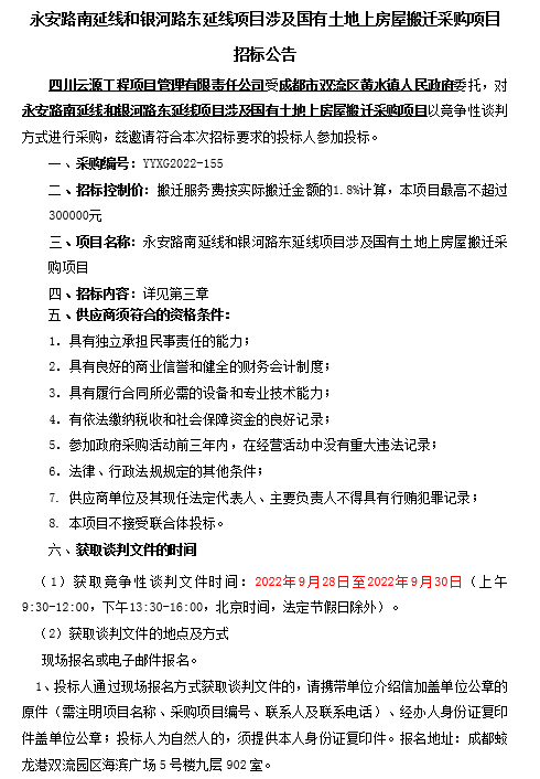 永安路南延线和银河路东延线项目涉及国有土地上房屋搬迁采购项目招标公告
