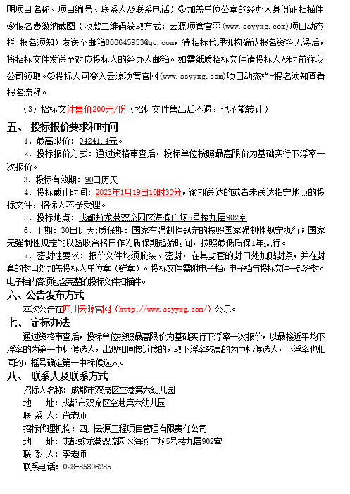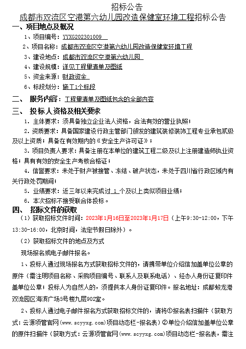 成都市双流区空港第六幼儿园改造保健室环境工程招标公告