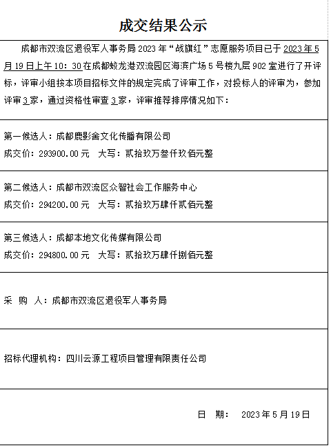 成都市双流区退役军人事务局2023年“战旗红”志愿服务项目结果公示