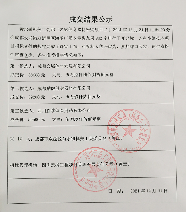 黄水镇机关工会职工之家健身器材采购项目成交结果公示