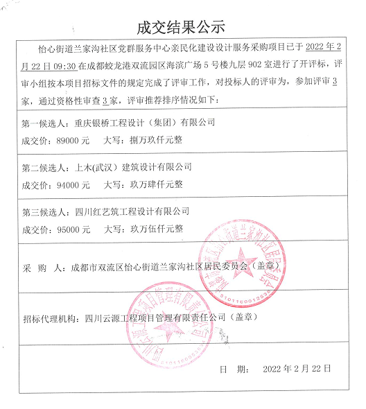 怡心街道兰家沟社区党群服务中心亲民化建设设计服务采购项目成交结果公示