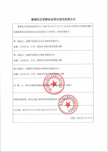 蔡堰社区党群活动项目结果公告