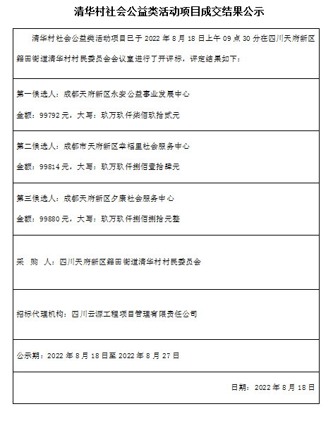 清华村社会公益类活动项目结果公告
