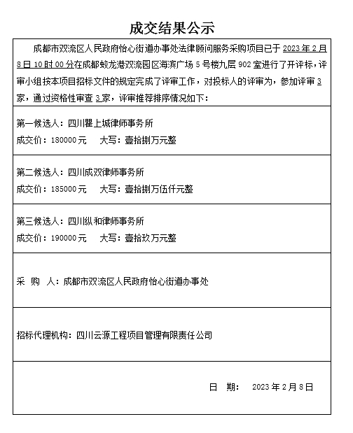 成都市双流区人民政府怡心街道办事处法律顾问服务采购项目