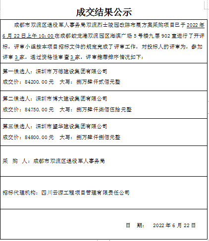 成都市双流区退役军人事务局双流烈士陵园改陈布展方案采购项目结果公示